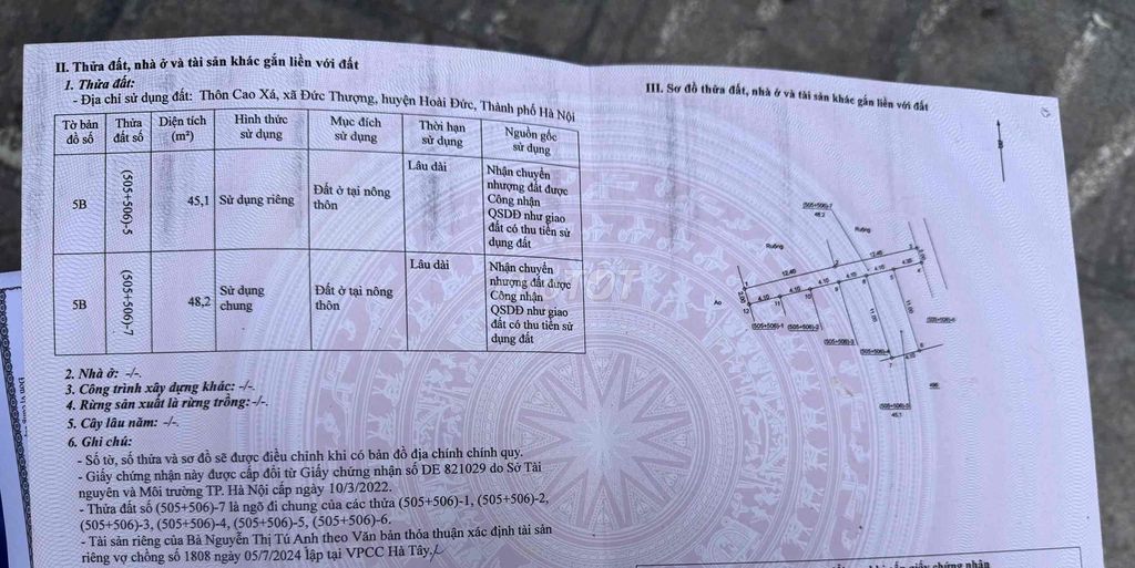 Thông tin chi tiết: ĐẤT ĐỨC THƯỢNG_HOÀI ĐỨC 45m2 chỉ gần 4 tỷ ô tô đỗ cửa THÔNG CÁC NGẢ