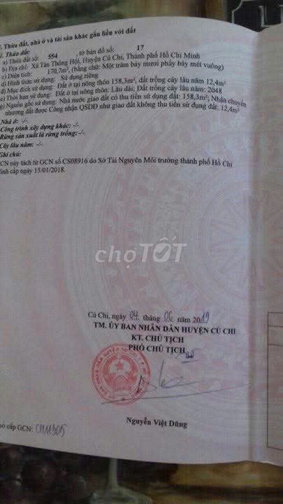 BÁN NHÀ MẶT TIỀN - CÁCH CHỢ VIỆT KIỀU 5 PHÚT DI CHUYỂN - GIÁ CHỈ 3.X TỶ Bạn đang tìm một mặt tiền đường thông thoáng, gần chợ, gần trường để vừa ở vừa kinh doanh? Đừng bỏ lỡ căn này: ✅ Vị trí: Đường Võ Thị Dòn, Tân Thông Hội, Củ Chi. Vị trí này cực kỳ thuận tiện để mở tiệm spa, văn phòng công ty, hoặc cửa hàng tạp hóa. ✅ Ưu điểm: Đất dài miên man 33m, nở hậu cực đẹp. Hiện trạng đã có nhà/mặt bằng cho thuê ổn định 6tr/tháng. ✅ Kết nối: Ra Quốc Lộ 22 cực gần, di chuyển về TP.HCM hay đi Tây Ninh đều thuận tiện. 📍 Diện tích: 170,7m2 (Thổ cư 158,3m2). Làm việc trực tiếp chính chủ, không qua trung gian giá ảo: ☎️ Hotline: ***